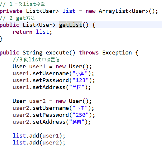 第三步 在执行的方法里面向list集合设置值