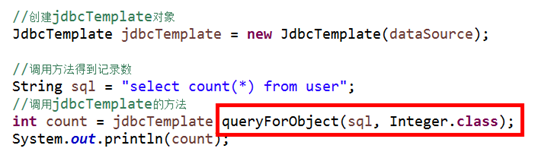 2 spring的jdbcTemplate操作 (1)实现crud操作 - 增加、修改、删除,调用模板update方法 - 查询某个值时候,调用queryForObject方法 --- 自己写实现类封装数据 - 查询对象,调用queryForObject方法 - 查询list集合,调用query方法