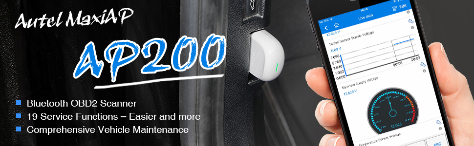 Autel AP200是创新性的蓝牙创新型OBD2扫描仪,配备了自己的App-“ Maxi AP200”,具有完善的OBD2功能,此外还提供众多重置服务(机油/ EPB / BMS / TPMS / SAS重置,DPF再生和IMMO服务等)。 ,这对于家庭DIY者来说是一种很快解决车辆问题的小可能。