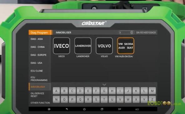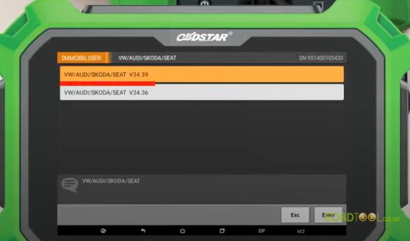 选择“ 诊断程序”->“ IMMOBILISER”->“VW/AUDI/SKODA/SEAT”->“VW/AUDI/SKODA/SEAT V34.39”