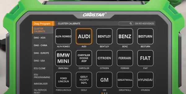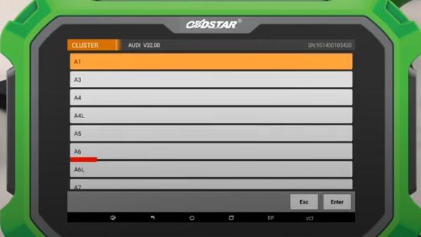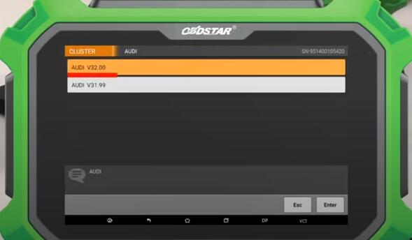 Select “Diag Program”->“CLUSTER CALIBRATE”->“ AUDI”->“ AUDI V32.00”