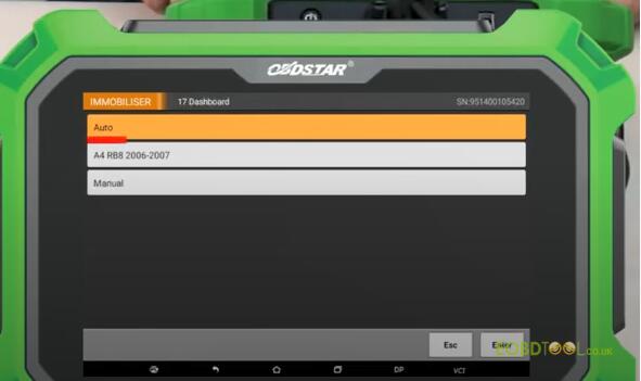 选择“ AUDI”->“2-3.5 Generation Immobilizer””->“Read PinCode”->“ 17 dashboard”->“Auto”