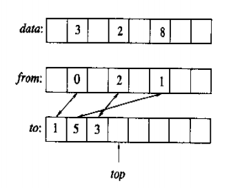 思路:使用额外的from和to数组,以及整数top.如果已经初始化data[i],那么from[i]<top且to[from[i]] == i, to和top一起确保了from不会写上内存的随机内容. 实际上这种机制并非100%可靠,可能不幸地出现这种情况:访问data[i],此时并未初始化data[i],但内存上的随机数据恰恰满足了from[i]<top且to[from[i]]==i. 但发生这种状况的几率极小.