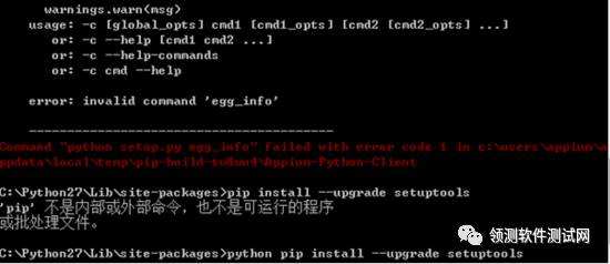 安装Appium-Python-Client客户端时有时会遇到setuptools版本问题,运行python pip install –upgrade setuptools升级后再安装: