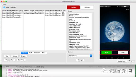 启动Appium后,用Appium Inspector进行控件识别(如下图)。