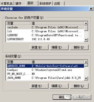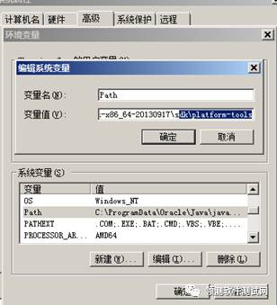 5) ADB安装: ADB是ADT的一个工具,所以,在要下一个ADT的安装包(免安装的)解压即可。然后,设置系统环境变量ANDROID_HOME为ADT所在目录(比如D:\Mobile-AutoTest-Software\adt-bundle-windows-x86_64-20130917\sdk),同时把并把ADT里的tools和platform-tools两个目录加入到系统的 Path路径里:注意:adb需要安装adb驱动,一般手机驱动自带adb驱动,所以只要安装一个手机驱动即可