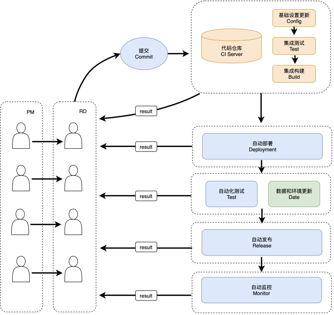 从知乎话题“如何理解持续集成、持续交付、持续部署”,我们可以看到大部分研发团队,会从软件研发的角度进行定义,他们将软件的开发步骤拆解为持续集成、持续交付、持续部署,其中持续集成指开发人员从编码到构建的过程。持续交付指将已经集成构建完成的代码,交付给测试团队进行测试的过程。持续部署指将测试通过的软件交付给用户的过程。而产品团队会站在产品的角度来看,他们认为持续交付,是从需求的PRD文档提出来,到用户能够感受到这个需求的周期。