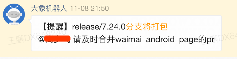 每天早上同步Aimeituan的Release分支,及时周知负责人同步结果,减少人工Check的重复工作。