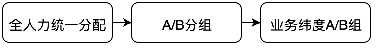 AB分组施行以后每个RD都是各版本开发的,不会出现同一个时间段内,要处理上个版本的Bug和当版需求的情况。但业务的熟悉度和RD的强对应关系还是没有得到解决,所以我们就进一步的思考,提出采用业务维度AB组。如下图所示,我们先将同学进行业务划分,在以业务组进行AB的划分。当然这个业务组人员的数量需要考虑业务的规划情况,当某一个业务需求量增长上来的时候,业务组的大小也需要同步进行增长。