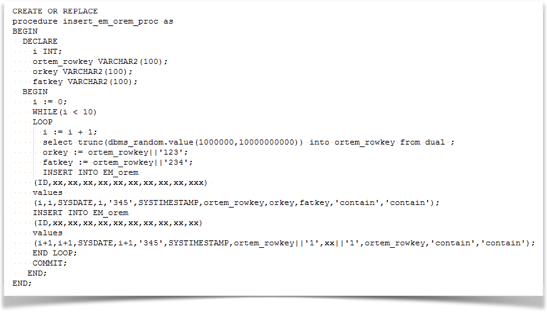 这里的测试数据内容很广,可包括测试准备和测试执行阶段所需要的一切数据来源,如:测试脚本、测试参数化文件、测试账号、辅助性测试程序等,即让测试工作更加有条不紊的进行,而不是等到测试时才发现这个东西要去找,那个东西又没有弄得自己手忙脚乱,降低测试效率。比如,下面是一段造数据的存储过程脚本: