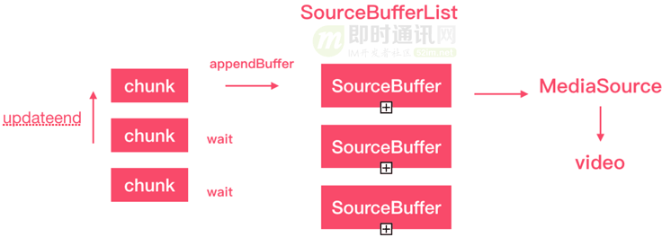 对于HLS和HTTP-FLV:我们可以直接使用 hls.js 和 flv.js 做做解码播放,这两个库内部都是通过MSE做的解码。首先根据视频封装格式提取出对应的音视频chunk数据,在MediaSource中分别对音频和视频创建SourceBuffer,将音视频的编码数据喂给SourceBuffer后SourceBuffer内部会处理完剩下的解码和音视频对齐工作,最后MediaSource将Video标签中的src替换成MediaSource 对象进行播放。