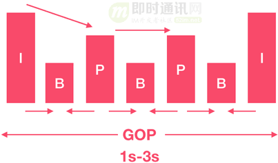 这边简单介绍一下GOP:在H.264视频编码的过程中,会生成三种帧类型:I帧、B帧和P帧。I帧就是我们通常说的关键帧,关键帧内包括了完整的帧内信息,可以直接作为其他帧的参考帧。B帧和P帧为了将数据压缩得更小,需要由其他帧推断出帧内的信息。因此两个I帧之间的时长也可以被视作最小的视频播放片段时长。从视频推送的稳定性考虑,我们也要求主播将关键帧间隔设置为定长,通常是1-3秒,因此除去其他因素,我们的直播在播放时也会产生1-3秒的延时。