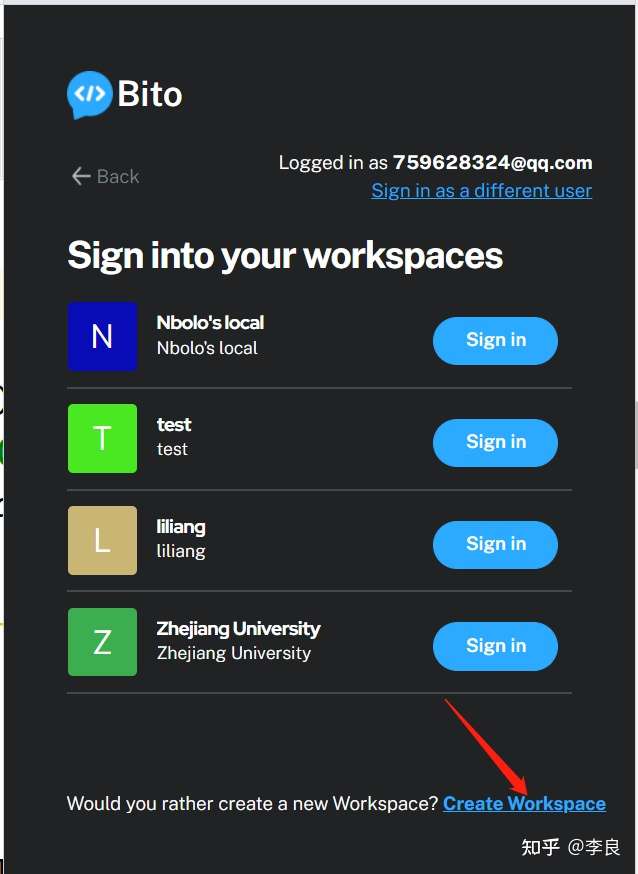 登录之后选择一个workspace,或者自己创建一个,点击Sign in即可开始使用。