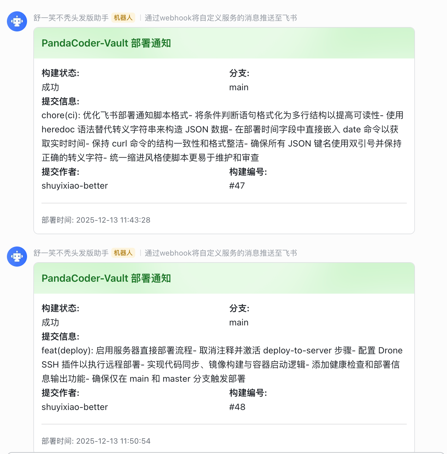 可选:飞书机器人通知(构建成功/失败,实时推送到群聊)