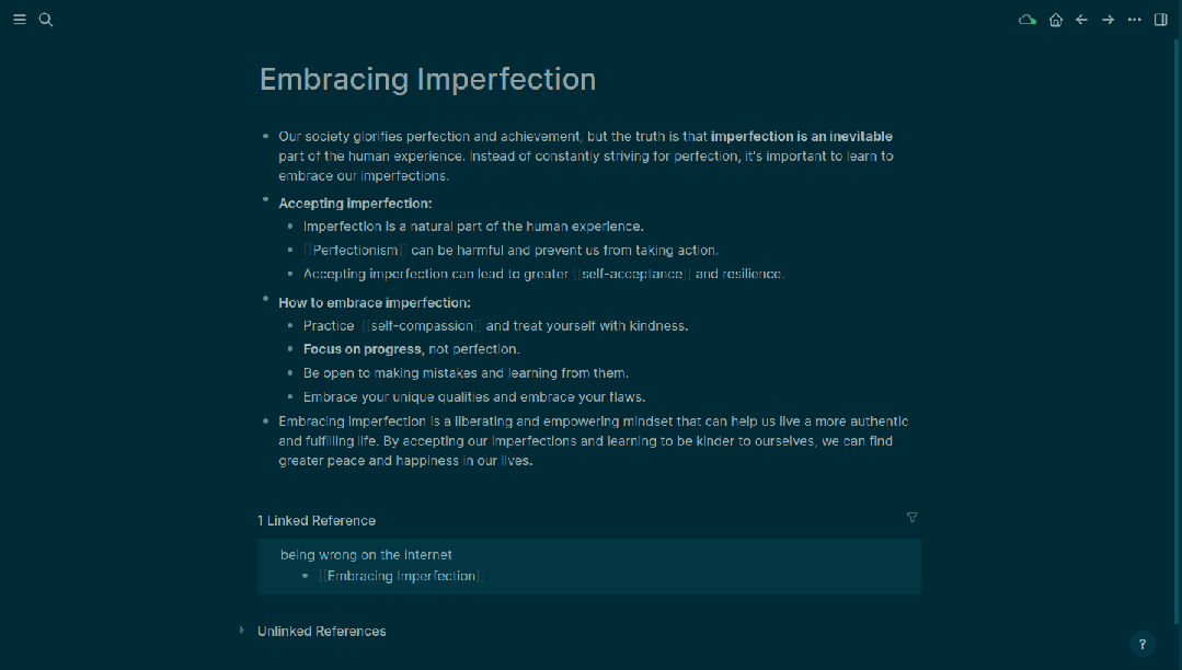- 双链笔记:Logseq 的双链笔记功能让你可以轻松链接笔记,形成内容网络,让知识不再是孤岛。你可以通过 [[ ]] 的语法创建双向链接,比如 [[项目管理]] 和 [[时间管理]],这样就能快速找到相关的内容。