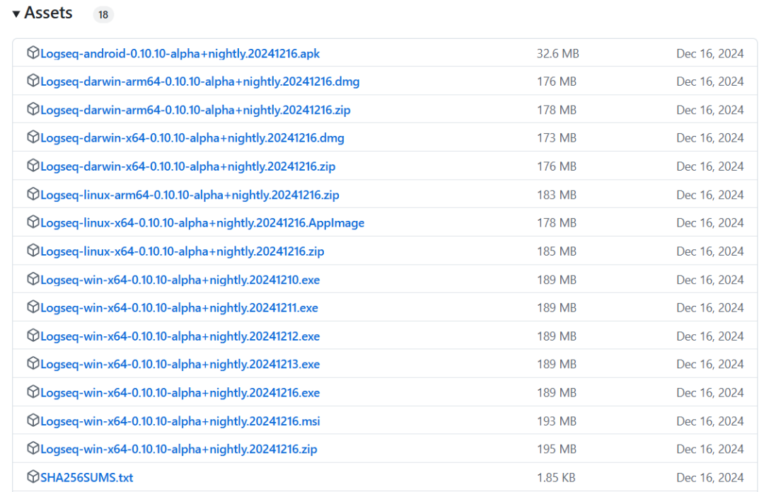 1、电脑端安装: 前往Logseq的官网或release页面下载最新版本,然后选择对应系统版本(支持macOS、Windows、Linux)进行安装。双击安装包,几秒钟就能搞定!