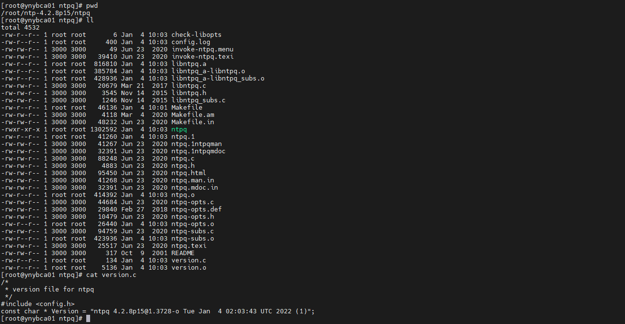 进入此目录/root/ntp-4.2.8p15/ntpq