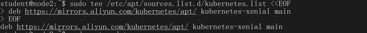 sudo tee /etc/apt/sources.list.d/kubernetes.list <<EOF