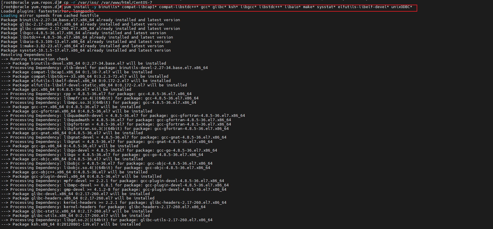 yum install -y binutils* compat-libcap1* compat-libstdc++* gcc* glibc* ksh* libgcc* libstdc++* libaio* make* sysstat* elfutils-libelf-devel* unixODBC*