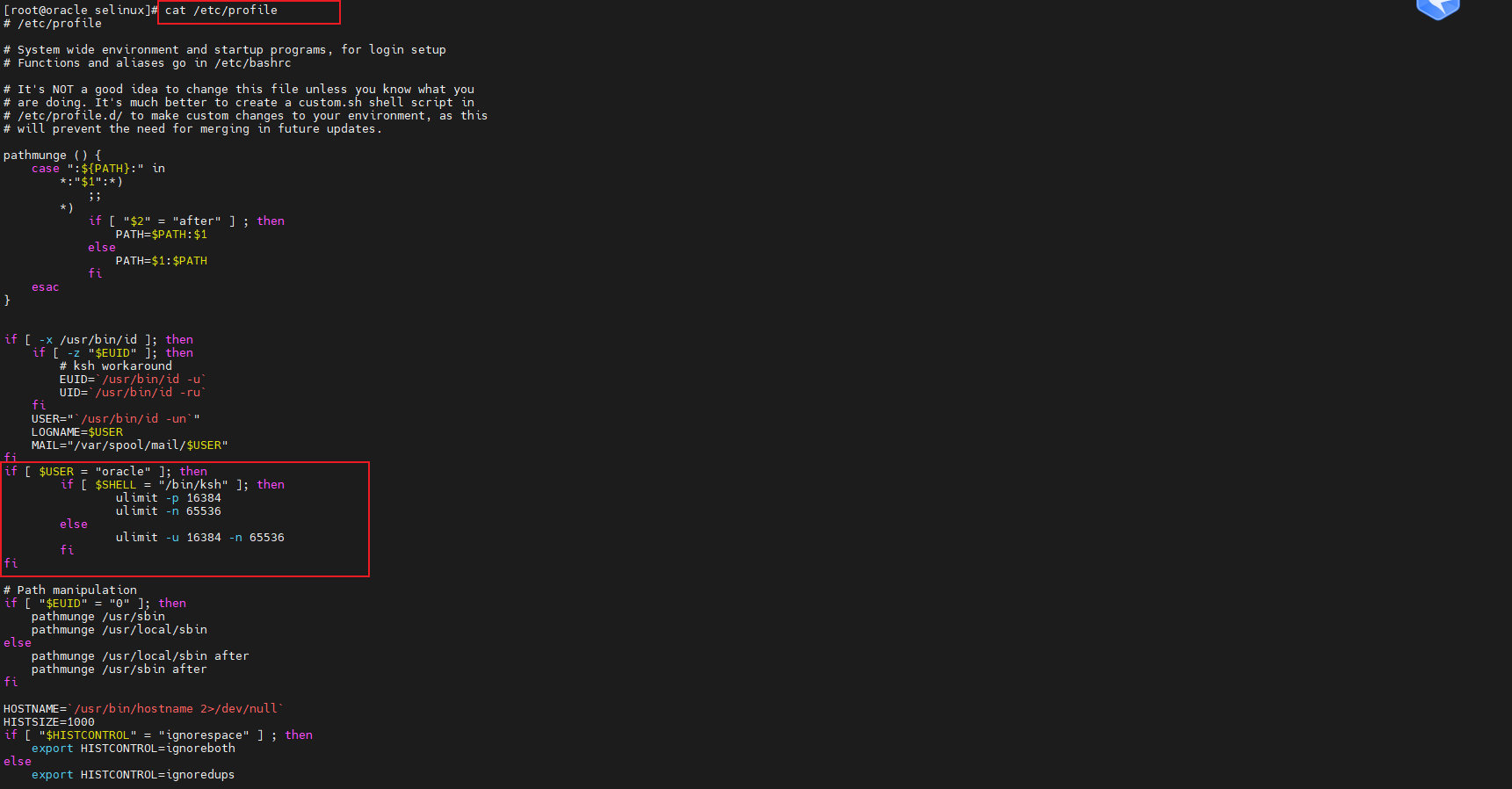 2.5 修改orac的数据库用户配置文件,进入目录/etc/profile,添加以下内容