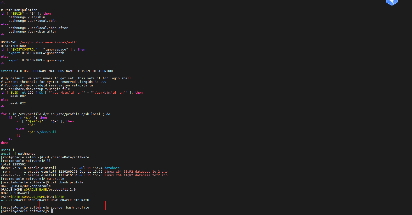 export ORACLE_BASE ORACLE_HOME ORACLE_SID PATH