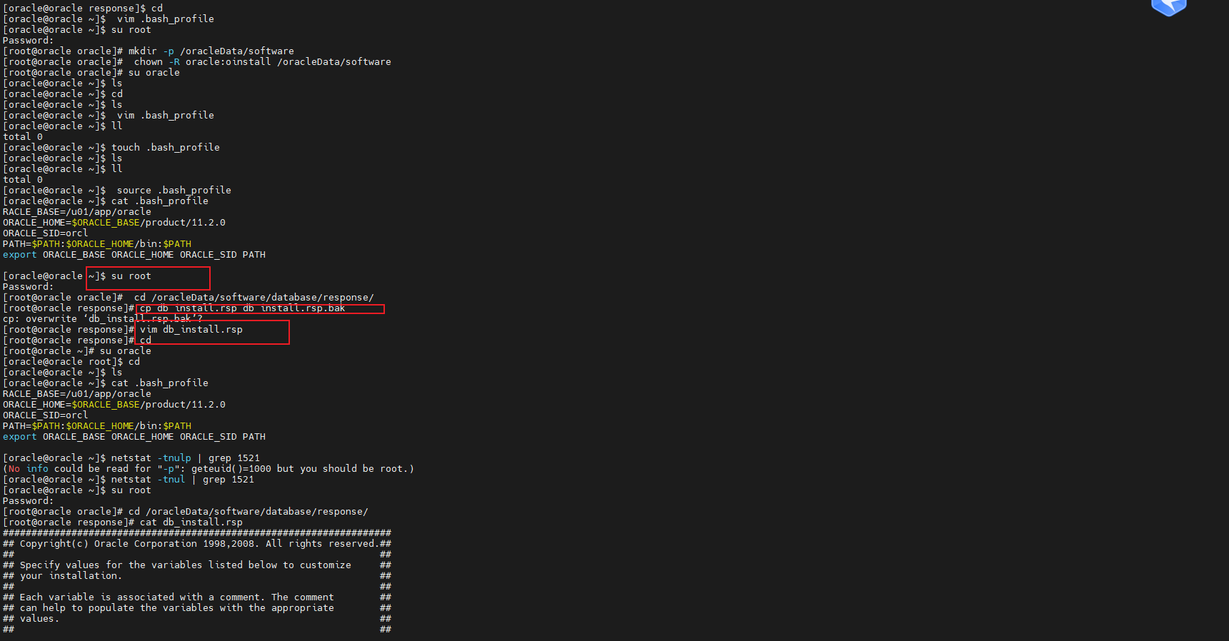 3.3 切换到root 用户,进行数据库的db_install.rsp文件备份