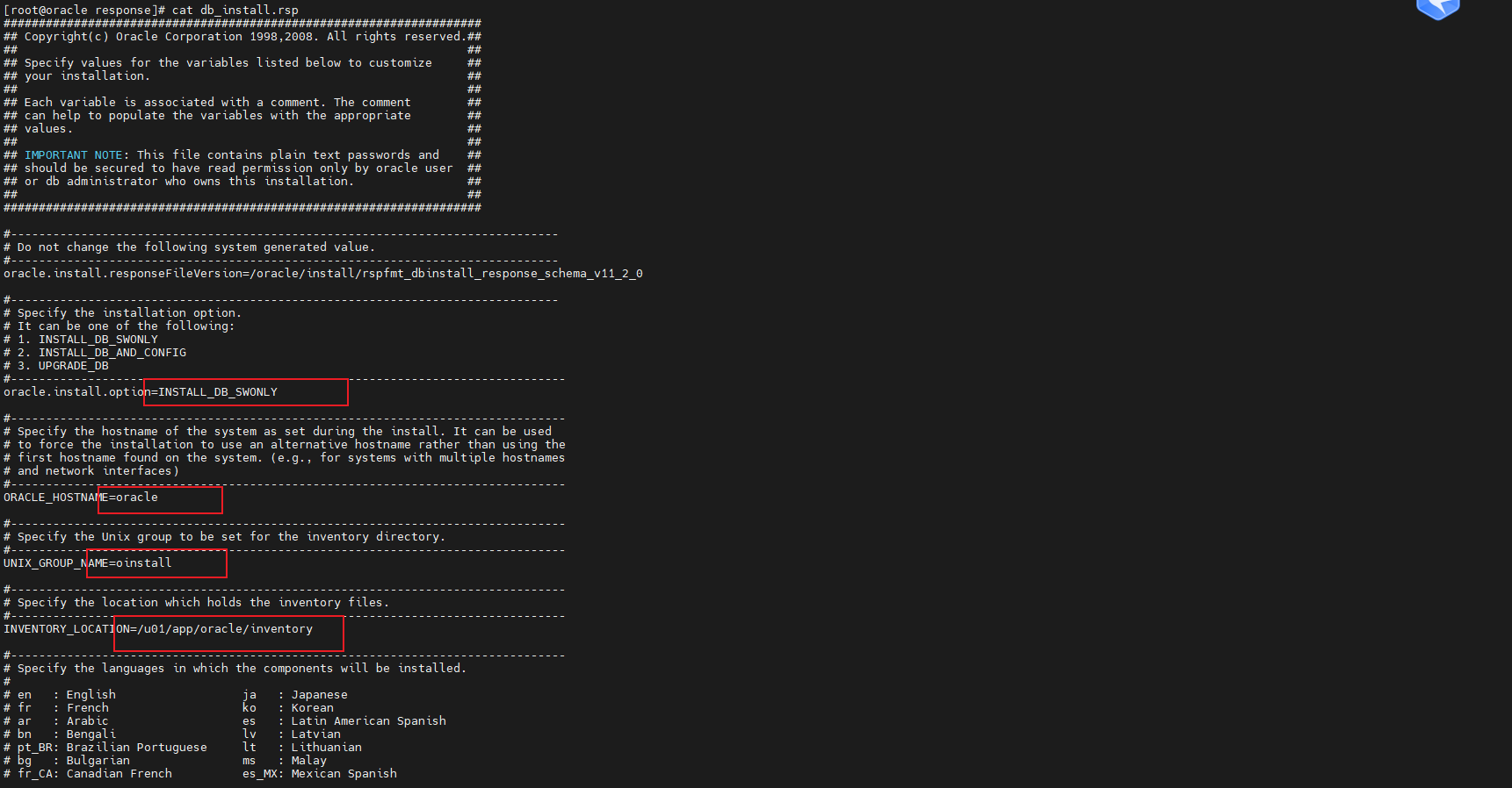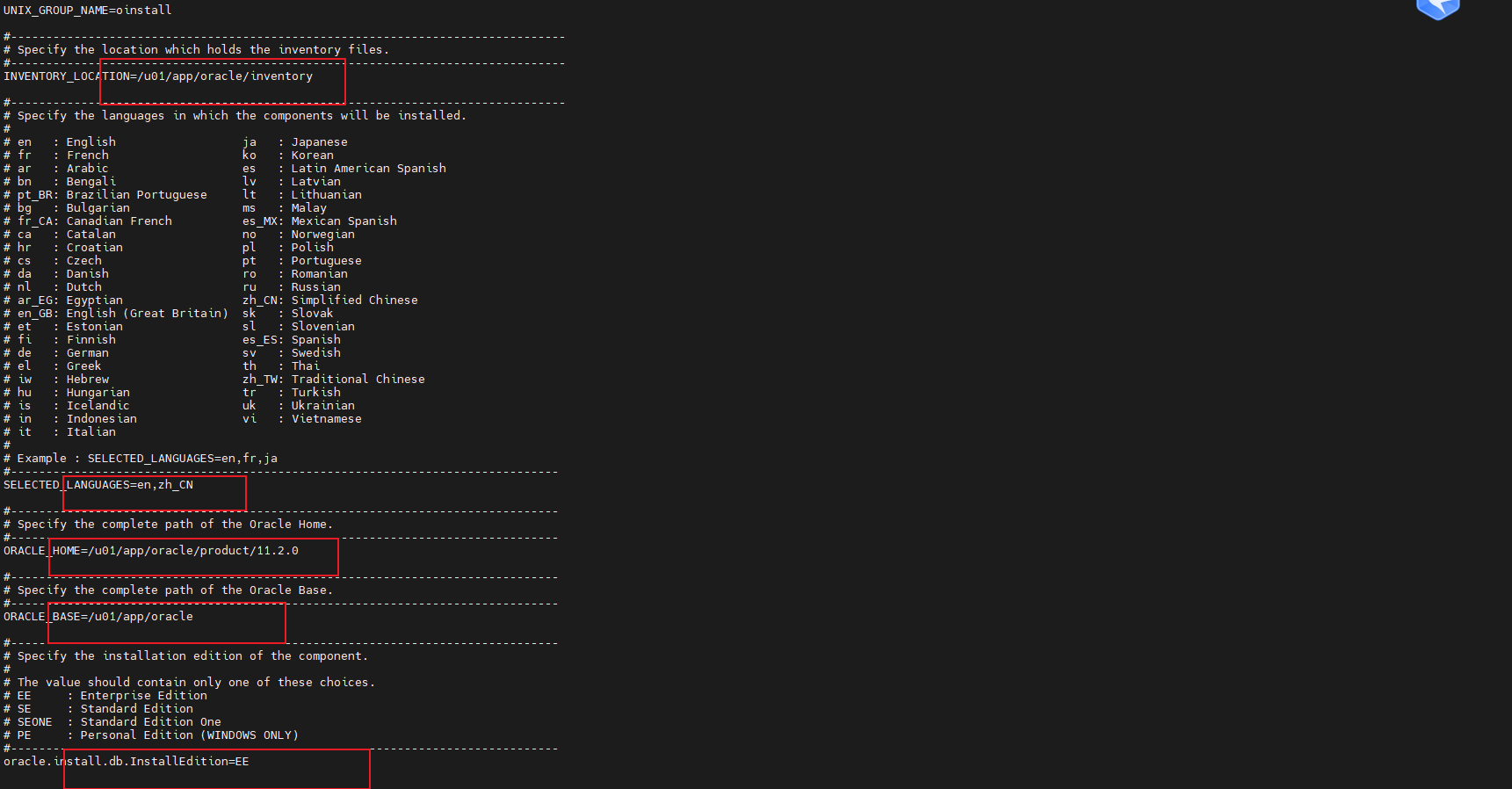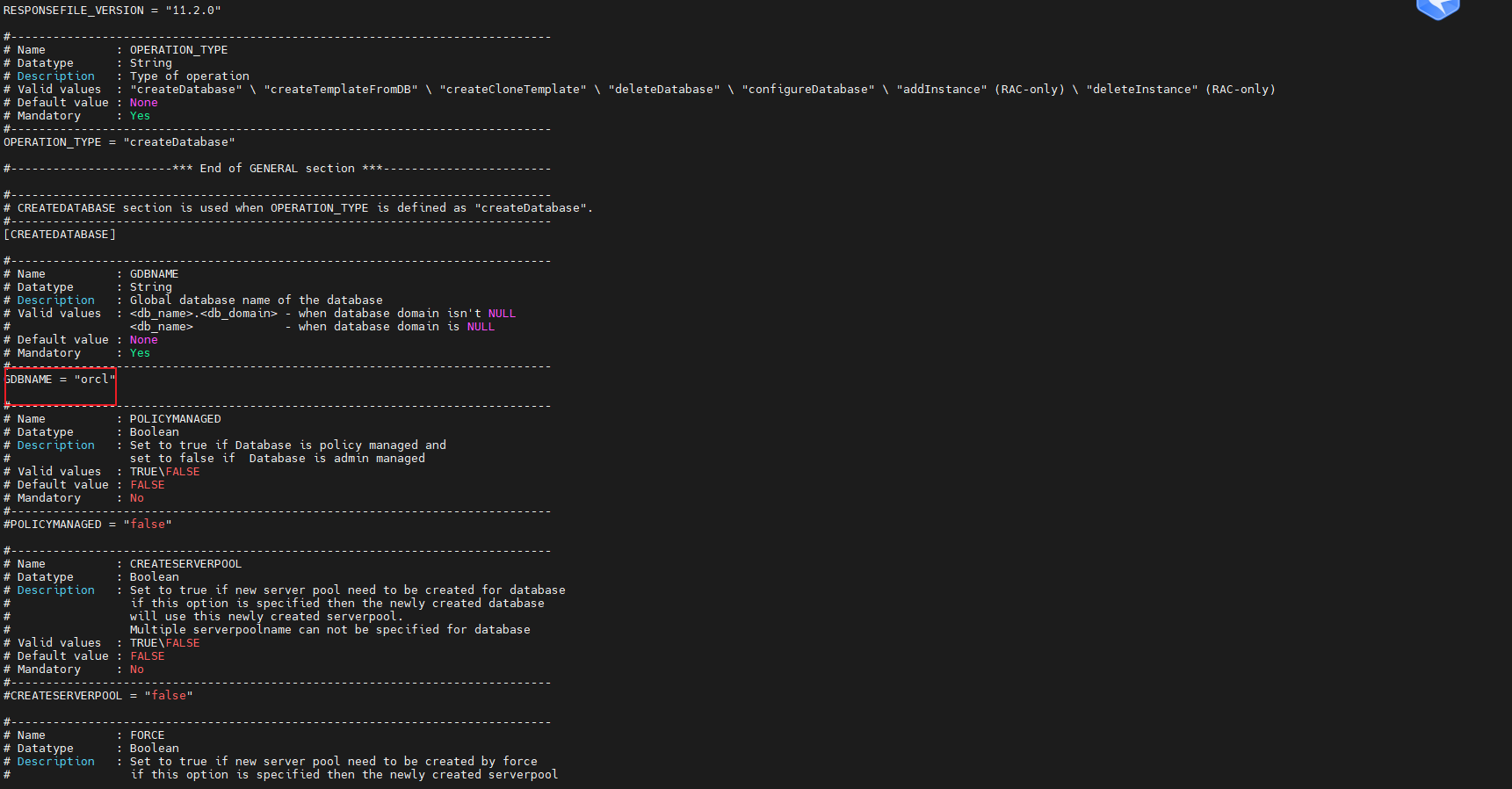 3.4 编辑db_install.rsp文件,具体配置文件如下