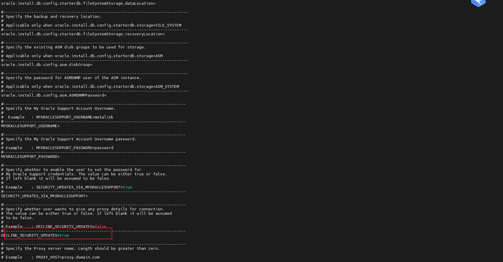 修改下列参数 oracle.install.option=INSTALL_DB_SWONLY