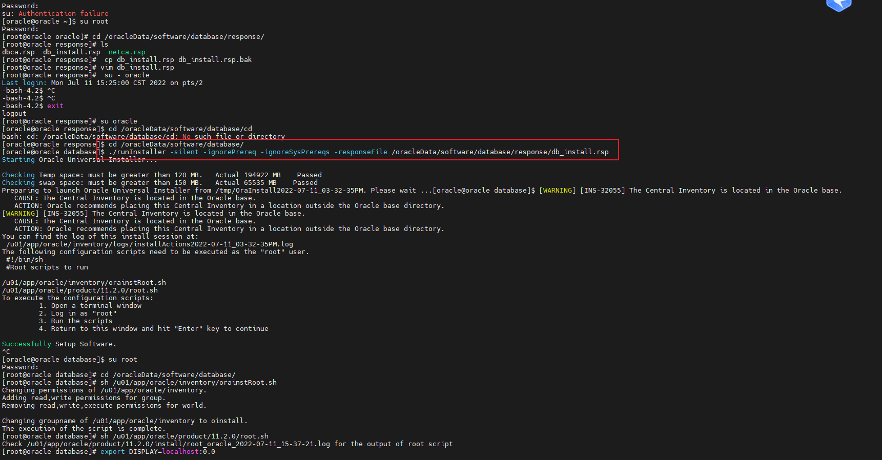 3.5 切换到oracle用户,进行db_install.rsp脚本安装