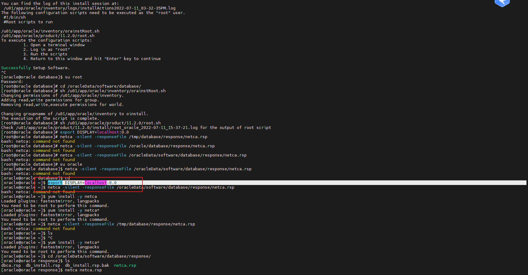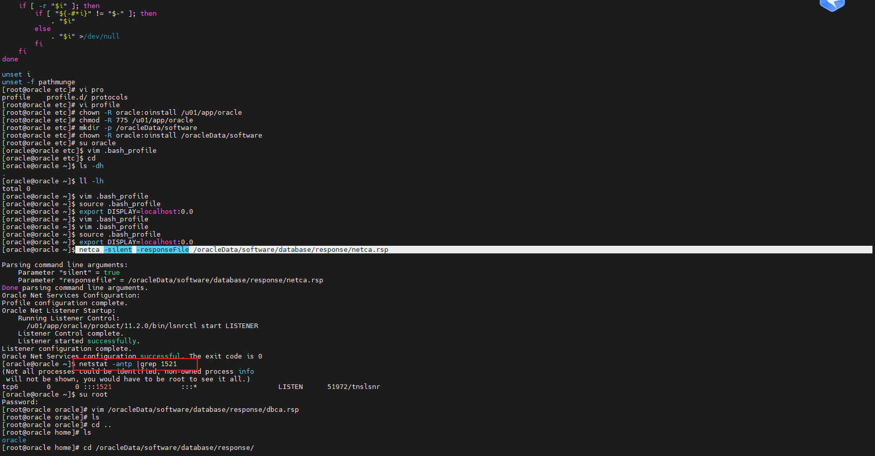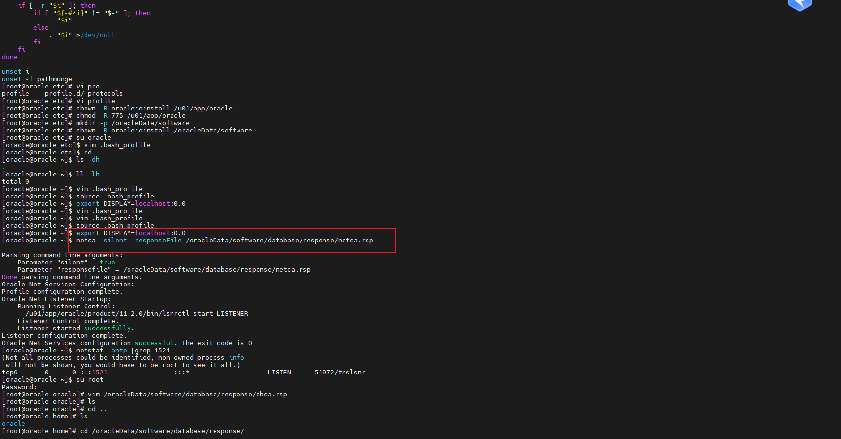 netca -silent -responseFile /oracleData/software/database/response/netca.rsp