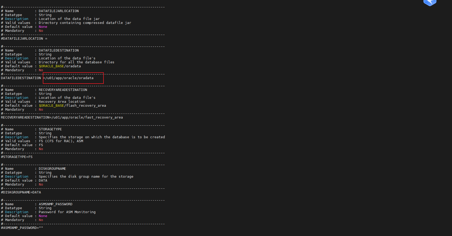DATAFILEDESTINATION =/u01/app/oracle/oradata /357