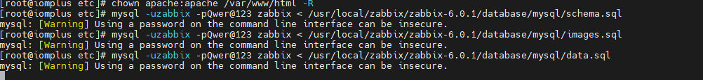 mysql -uzabbix -pQwer@123 zabbix < /usr/local/zabbix/zabbix-6.0.1/database/mysql/schema.sql