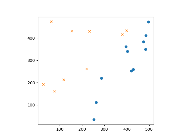 # 绘制训练数据中标签为-1的样本的第一和第二特征,使用叉号标记