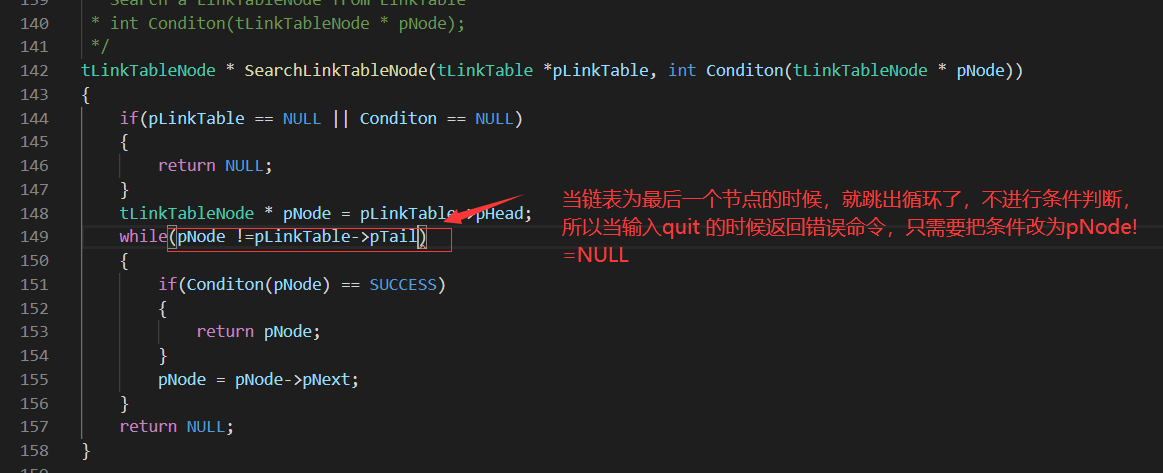 本函数中带一个函数指针,这个函数指针表示搜索条件,由用户指定,链表这个类遍历整个链表,依次把节点传入回调函数中 ,如果返回值为真则返回该节点,否则继续遍历。这样做的好处有很多1把链表类和使用链表者解耦合,链表专注于它自己的功能,添加删除,搜索,用户专注于自己的逻辑代码,实现的软件工程中高内聚低耦合的原则,方便修改和增加功能,链表的功能也更加强大,用户可以自定义搜索条件,链表类不用暴露自己的过多信息。