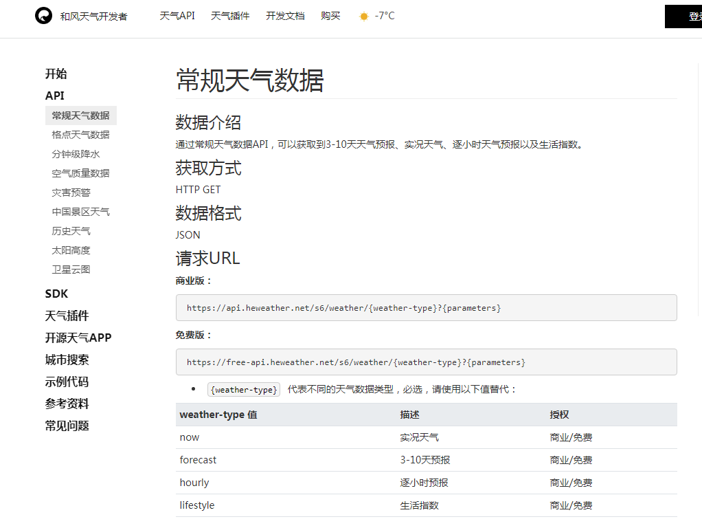2)和风API接口方式,注册完可以登录看下,写的还是挺详细的