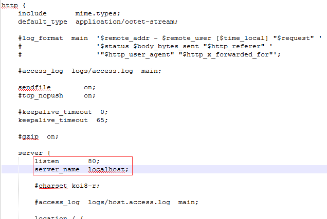 nginx的配置文件是conf目录下的nginx.conf,默认配置的nginx监听的端口为80,如果80端口被占用可以修改为未被占用的端口即可