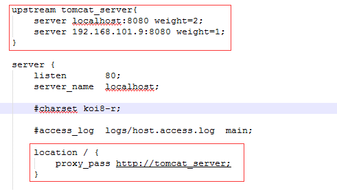 当服务器 localhost:8080 挂掉时,nginxnginx能将请求自动转向服务器 192.168.101.9:8080 。上面还加了一个weight属性,此属性表示各服务器被访问到的权重,weight