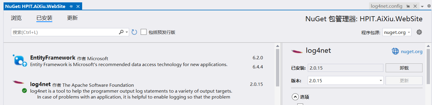 1.通过Nuget安装Log4net程序包