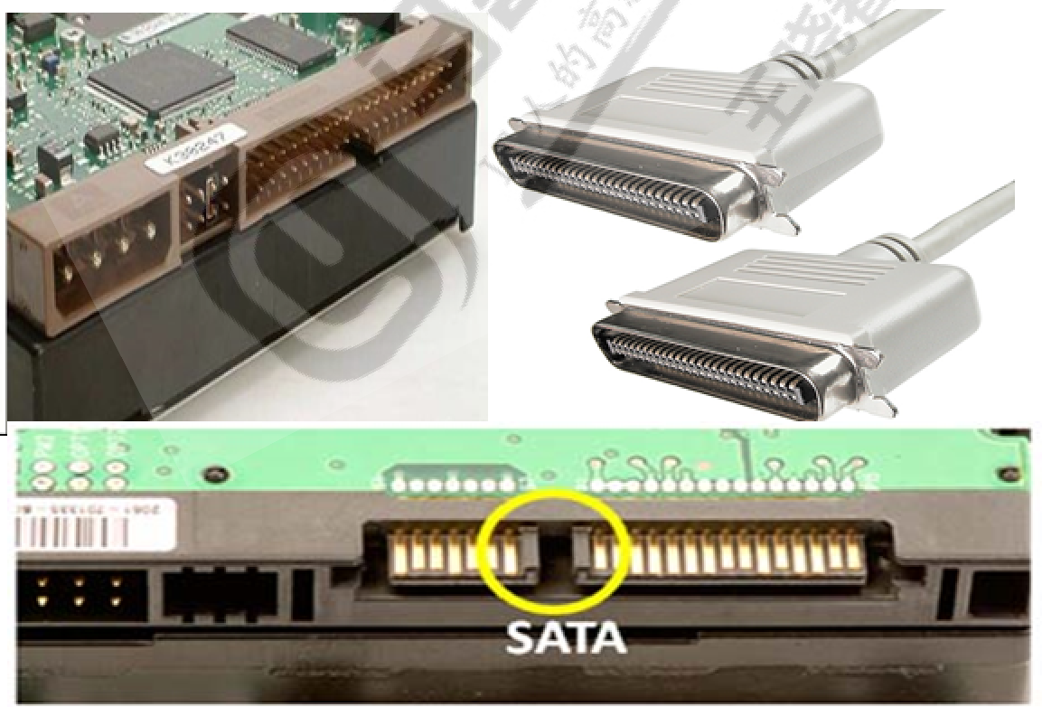 SATA:6Gbps,SATA数据端口与电源端口是分开的,即需要两条线,一条数据线,一条电源线