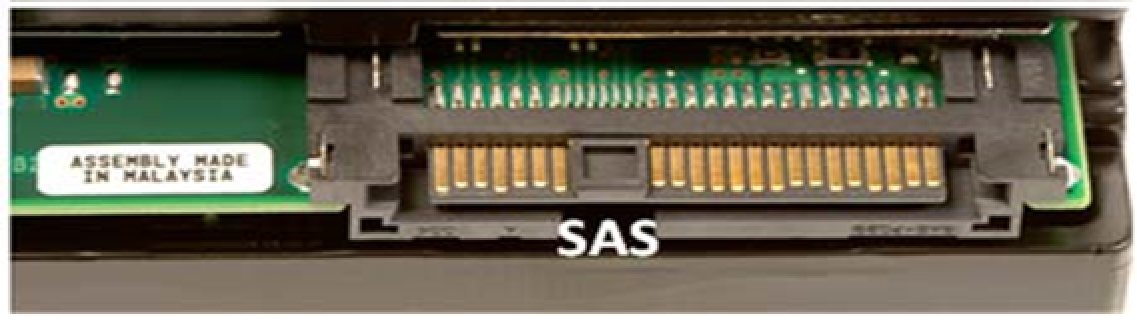 SAS:6Gbps,SAS是一整条线,数据端口与电源端口是一体化的,SAS中是包含供电线的,而