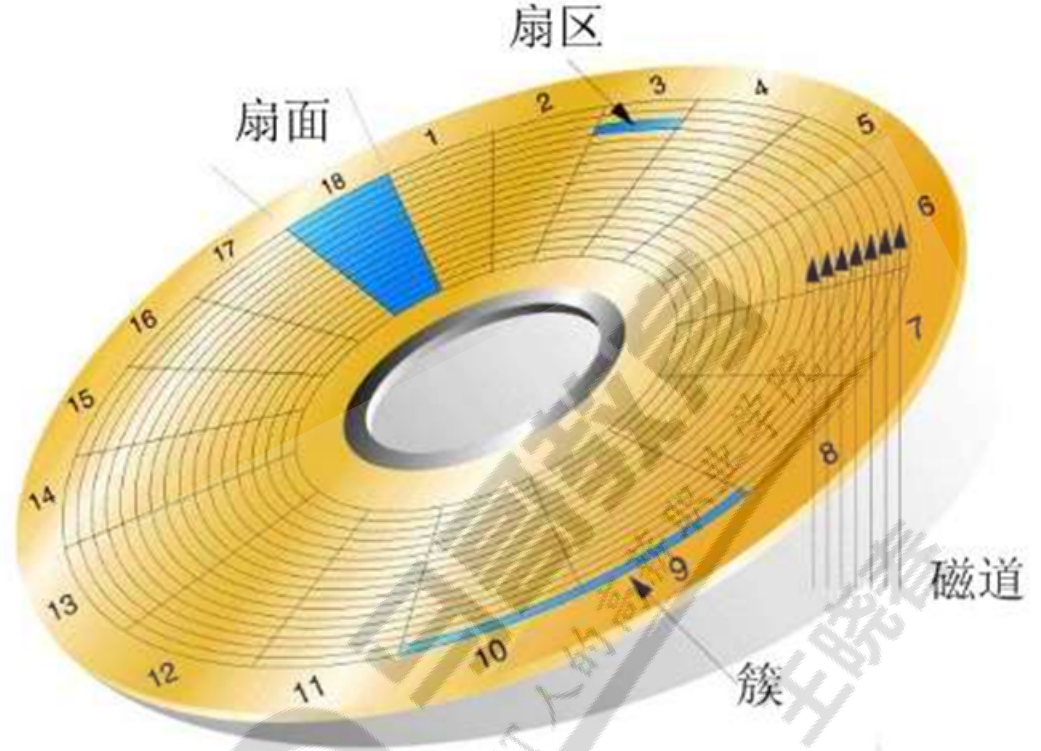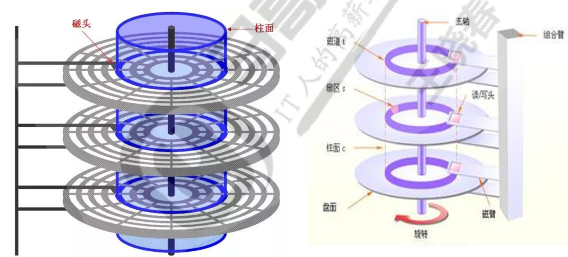 上,每张盘片之间是平行的,在每个盘片的存储面上有一个磁头,磁头与盘片之间的距离比头发丝的直