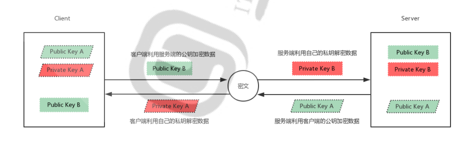 特点:用公钥加密数据,只能使用与之配对的私钥解密;反之亦然