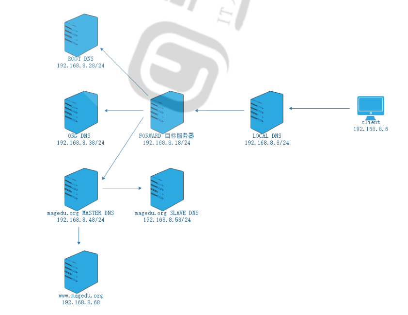 #在magedu.org域从DNS服务器192.168.8.58/24上实现