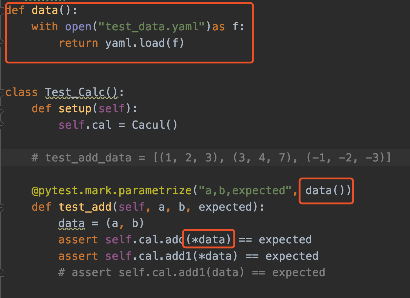 这里为了更优雅的处理yaml文件,在类外面加了一个读取文件的函数,*data是因为,add和add1方法都是两个参数,如果只加一个data会提示缺少一个参数,用动态参数就不会出现这个问题