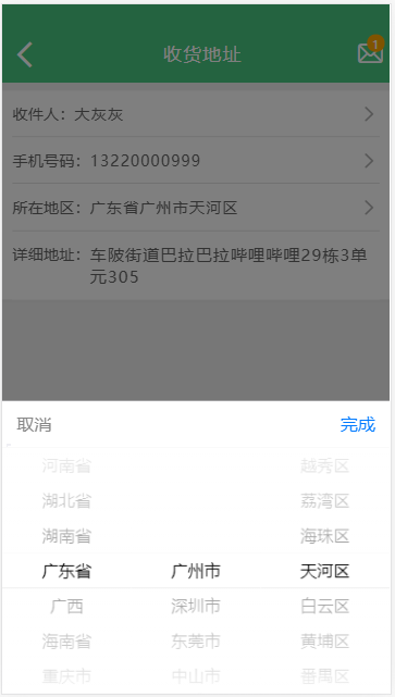 1 <template> 2 <picker @change="bindPickerChange" @columnchange="columnchange" :range="array" range-key="name" :value="value" mode="multiSelector"> 3 <slot></slot> 4 </picker> 5 </template> 6 7 <script> 8 import AllAddress from './data.js' 9 let selectVal = ['','',''] 10 11 export default { 12 data() { 13 return{ 14 value: [0,0,0], 15 array: [], 16 index: 0 17 } 18 }, 19 created() { 20 this.initSelect() 21 }, 22 methods:{ 23 // 初始化地址选项 24 initSelect() { 25 this.updateSourceDate() // 更新源数据 26 .updateAddressDate() // 更新结果数据 27 .$forceUpdate() // 触发双向绑定 28 }, 29 // 地址控件改变控件 30 columnchange(d) { 31 this.updateSelectIndex(d.detail.column, d.detail.value) // 更新选择索引 32 .updateSourceDate() // 更新源数据 33 .updateAddressDate() // 更新结果数据 34 .$forceUpdate() // 触发双向绑定 35 }, 36 37 /** 38 * 更新源数据 39 * */ 40 updateSourceDate() { 41 this.array = [] 42 this.array[0] = AllAddress.map(obj => { 43 return { 44 name: obj.name 45 } 46 }) 47 this.array[1] = AllAddress[this.value[0]].city.map(obj => { 48 return { 49 name: obj.name 50 } 51 }) 52 this.array[2] = AllAddress[this.value[0]].city[this.value[1]].area.map(obj => { 53 return { 54 name: obj 55 } 56 }) 57 return this 58 }, 59 60 /** 61 * 更新索引 62 * */ 63 updateSelectIndex(column, value){ 64 let arr = JSON.parse(JSON.stringify(this.value)) 65 arr[column] = value 66 if(column === 0 ) { 67 arr[1] = 0 68 arr[2] = 0 69 } 70 if(column === 1 ) { 71 arr[2] = 0 72 } 73 this.value = arr 74 return this 75 }, 76 77 /** 78 * 更新结果数据 79 * */ 80 updateAddressDate() { 81 selectVal[0] = this.array[0][this.value[0]].name 82 selectVal[1] = this.array[1][this.value[1]].name 83 selectVal[2] = this.array[2][this.value[2]].name 84 return this 85 }, 86 87 /** 88 * 点击确定 89 * */ 90 bindPickerChange(e) { 91 this.$emit('change', { 92 index: this.value, 93 data: selectVal 94 }) 95 return this 96 } 97 98 } 99 } 100 </script> 101 102 <style> 103 </style>