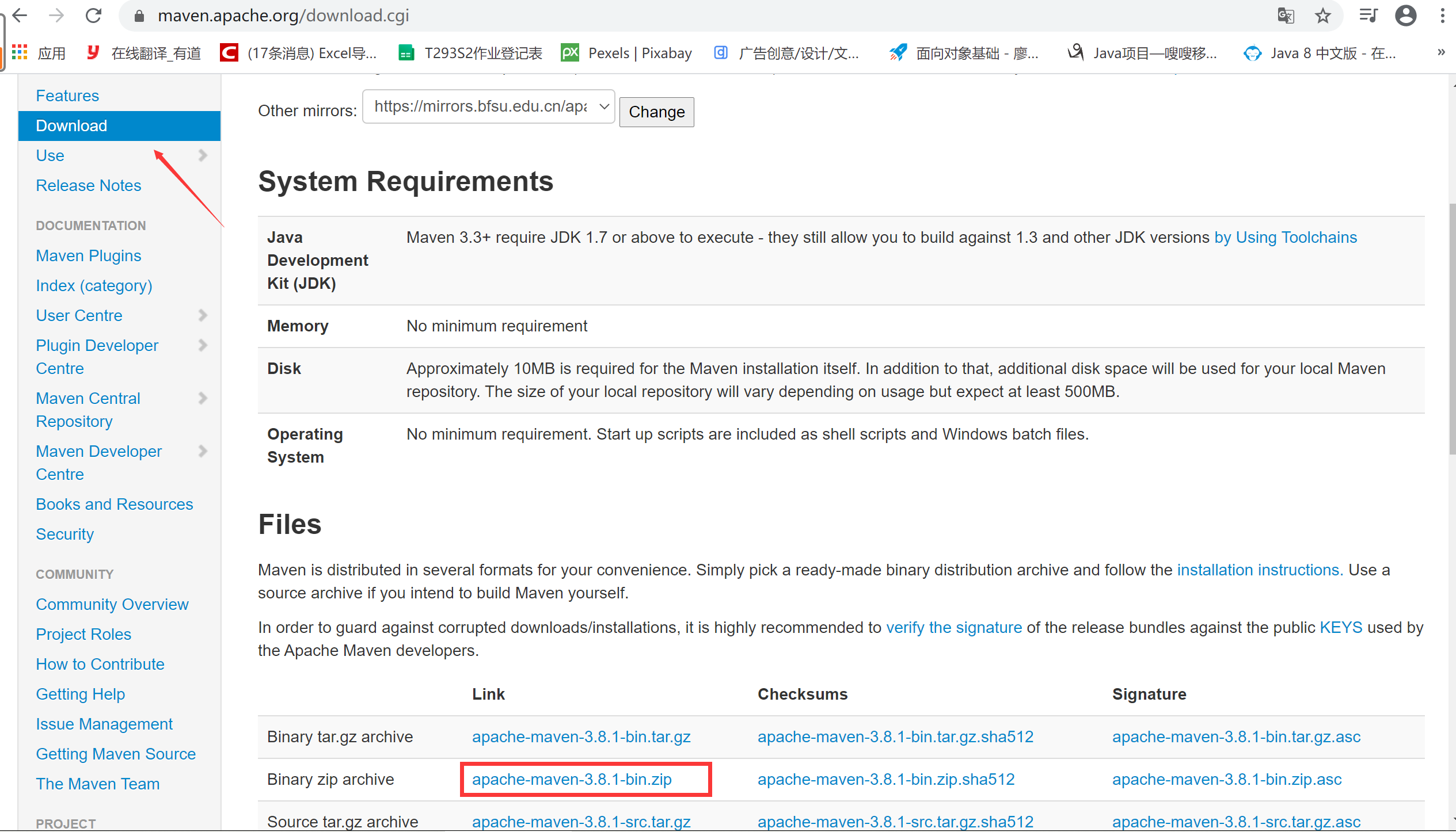 从maven官网(https://maven.apache.org/download.cgi)上选择需要版本下载好后,