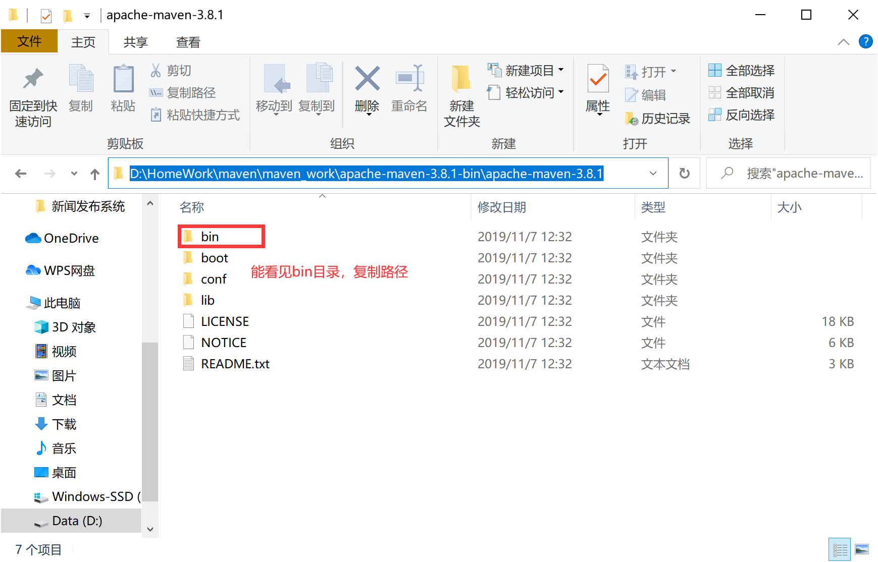 如果提示“mvn不是内部或外部命令”,试着将刚刚“系统变量”中的path中的路径改为你maven的bin目录的绝对路径,