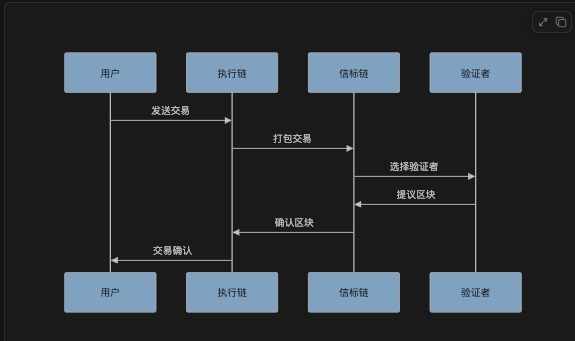 验证者信标链执行链用户验证者信标链执行链用户发送交易打包交易选择验证者提议区块确认区块交易确认