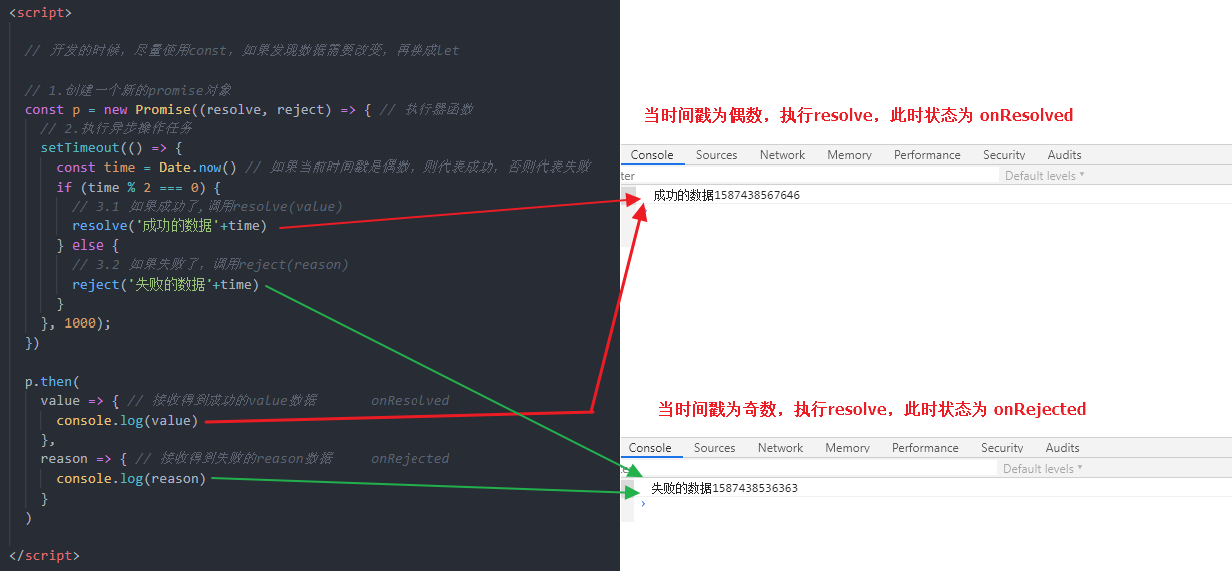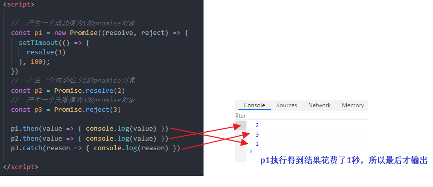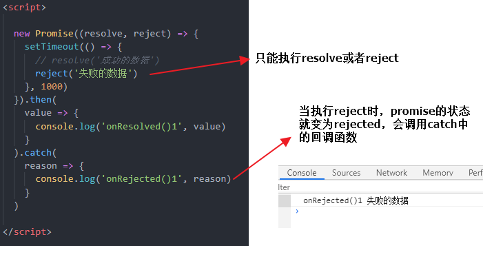 成功的结果数据一般称为 value,失败的结果数据一般称为 reason