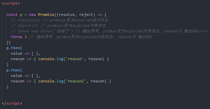 ①如果抛出异常, 新promise变为rejected, reason为抛出的异常